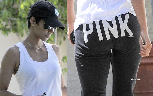 Halle Berry gets camera shy after visiting a friend in Burbank, May 5, 2010