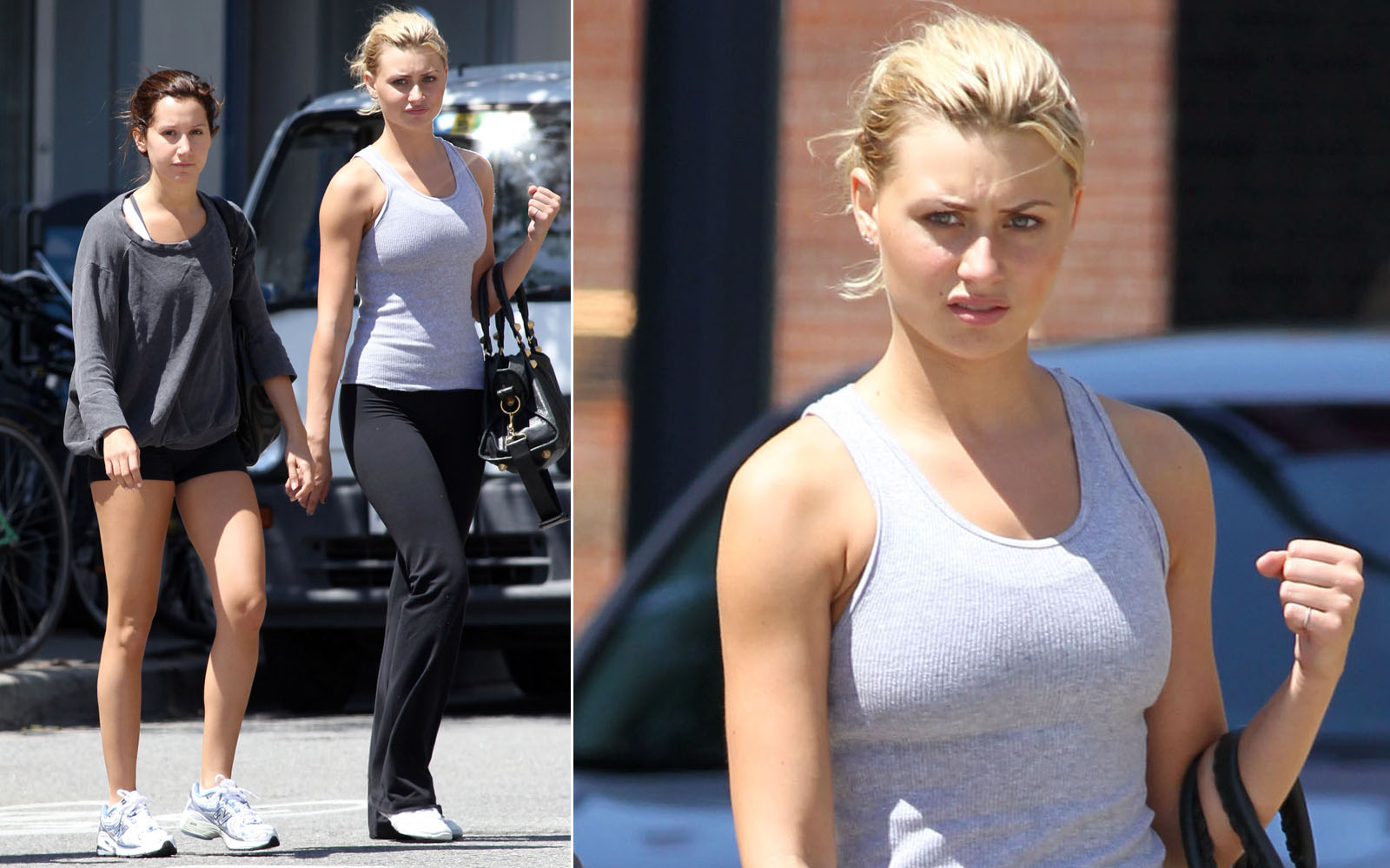 Vancouver, July 18: Ashley Tisdale and Alyson 'Aly' Michalka return home after cheerleading workouts and lunch with with Ashley's mom.
