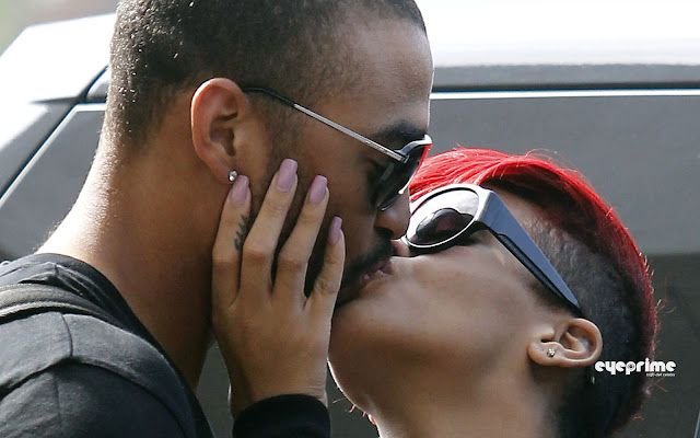 Rihanna grabs onto her Dodger boyfriend Matt Kemp and kisses him goodbye