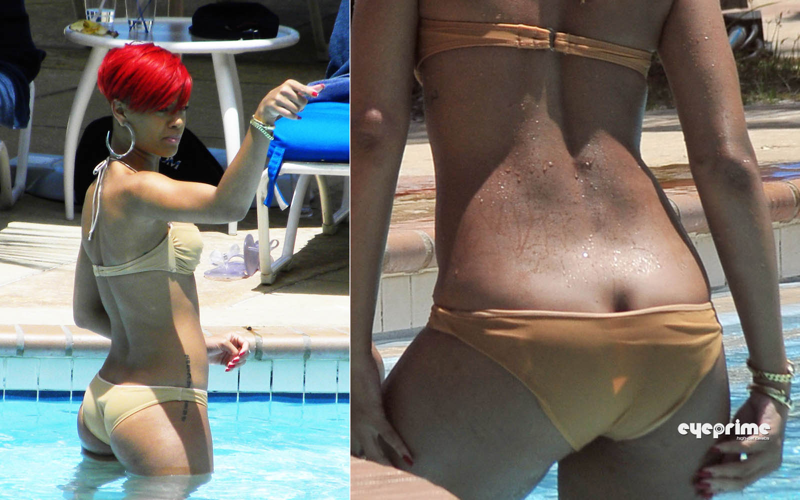 Rihanna in a Bikini has some fun Poolside at the Hotel in Barbados
