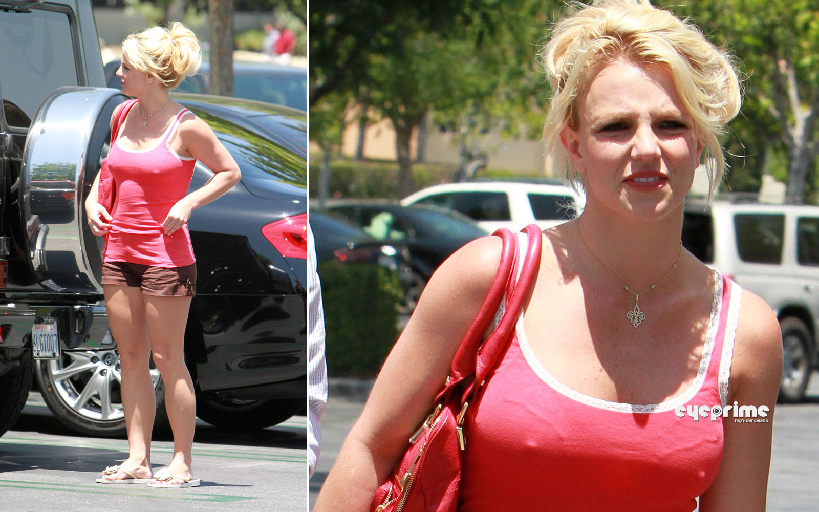 Britney Spears made her way out for lunch at Marmalade Cafe with her two bodyguards and her agents assistant Adam Leber in Calabasas, California on June 22, 2010. Britney made her way into the popular Cafe with a smile on her face but when the pop princess emerged after her meal she seemed to be in a bitter mood. The Gimme More singer clinched her fist and had a sour look on her face, which could be from the hounding photographers waiting for her outside, or could it be business that is upsetting her this afternoon?